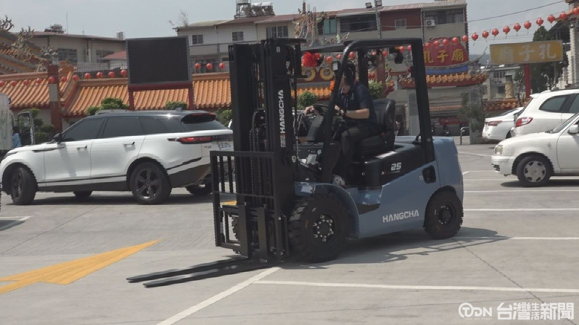 ▲全新的堆高機,將進行局部改裝後,符合清潔隊作業需求,即可加入清潔隊的工作行列。/記者 王昭聖 攝