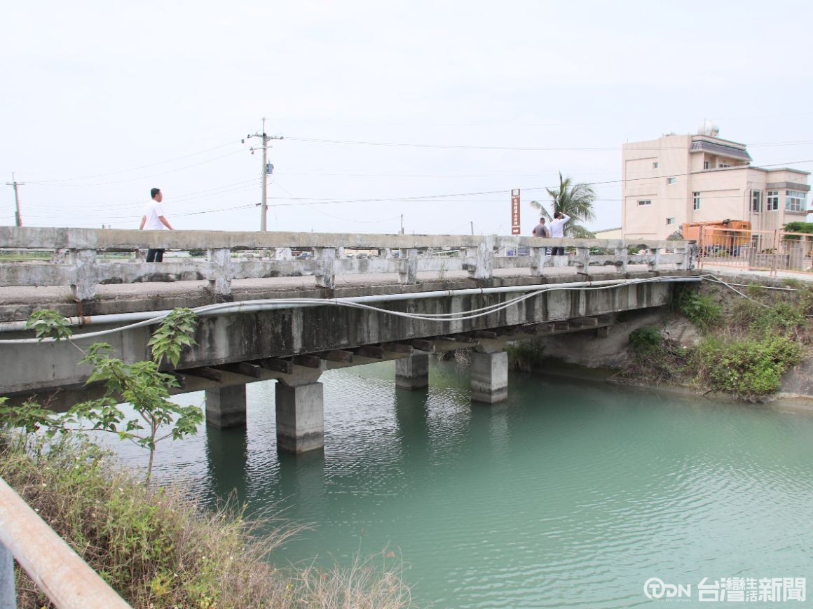 ▲嘉義縣水上鄉龍德橋年久老舊,加強橋墩但仍有結構疑慮,將斥資1450萬元改建/記者黃培怡 攝。
