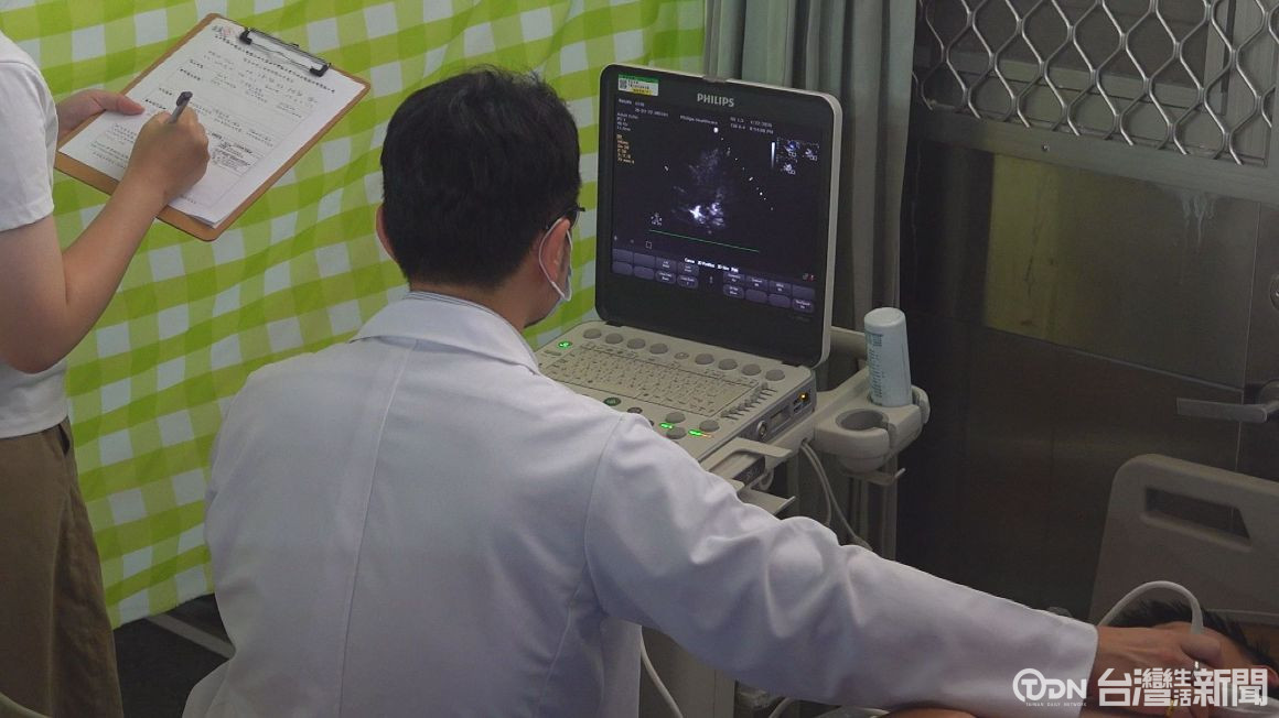 ▲高雄長庚醫院川崎症醫學中心這天也來到飛沙國中,利用機器檢測學生是否有川崎症,希望能提早讓孩子接受完善治療。/記者 陳佳昇 攝。