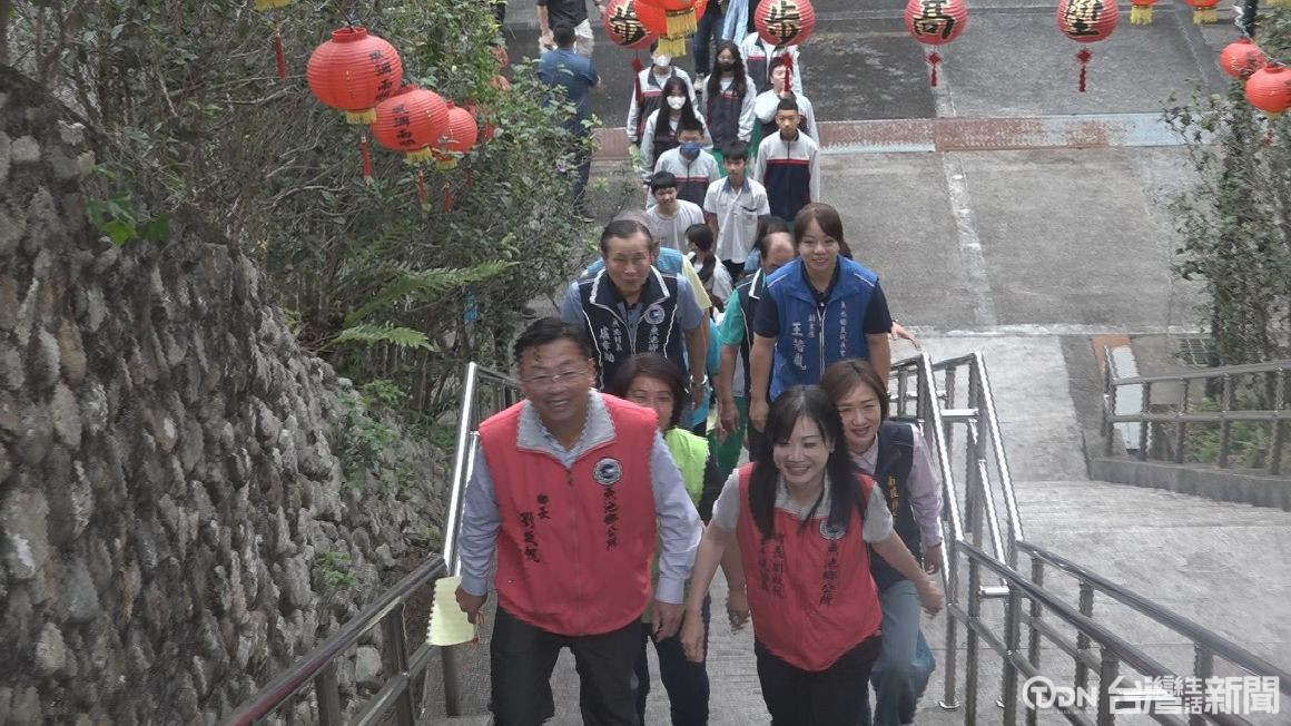 魚池鄉內國中小的校長及考生代表,在魚池鄉長劉啟帆的率領下,一路沿著步步高升的樓梯,前往瓊文書院拜拜祈福。