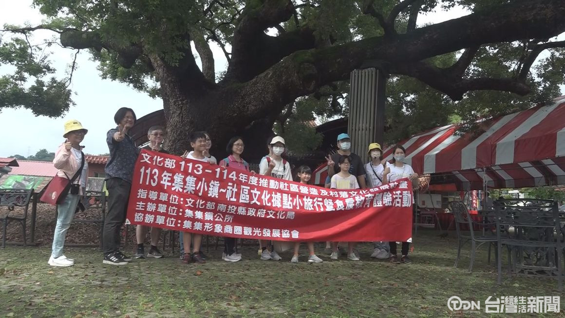 ▲集集小鎮深度之旅,遊客開心合影。/資料照片/記者 蔡育楷 攝