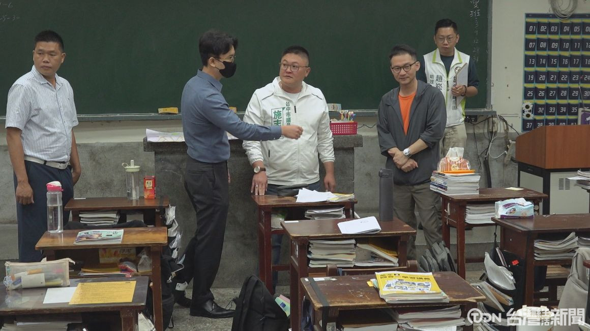 ▲地方民代這天也會同相關單位到場會勘,並成功爭取147萬元經費,將協助汰換490套老舊課桌椅/記者 陳柏翰攝