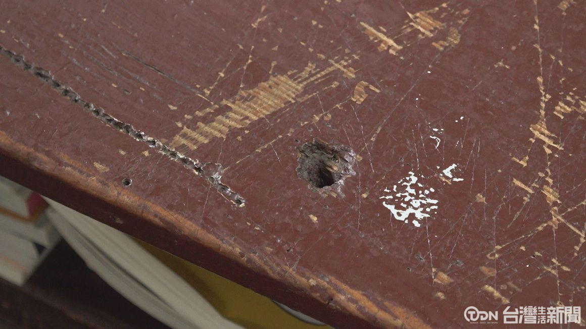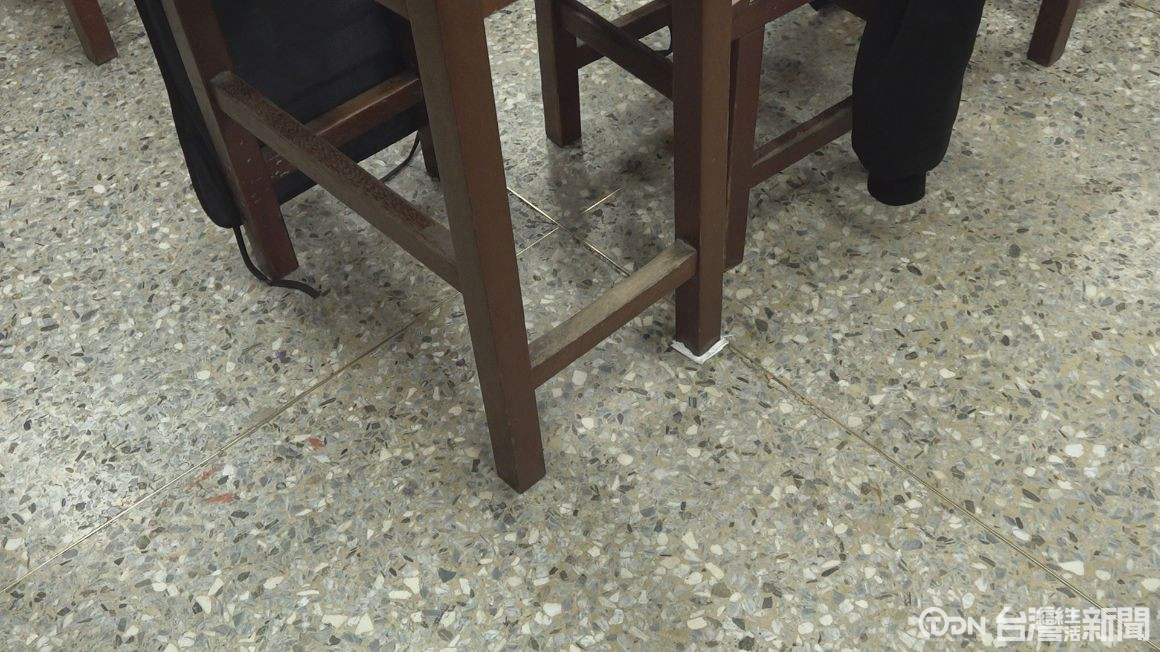 木製的課桌椅,桌面出現多處缺損情形,甚至因為桌腳長短不一,學生上課時還得隨身攜帶墊片或紙張,自己動手「DIY」,避免桌椅搖晃長期下來,不僅影響專注力,對於正值發育期的高中生來說,坐姿不良更是一大健康隱憂。