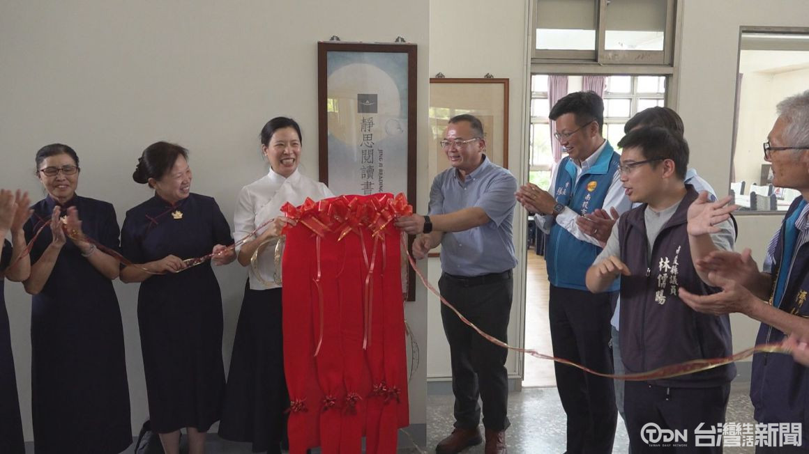▲貴賓共同剪綵,南投國小靜思閱讀書軒正式啟用/記者 蔡育楷 攝