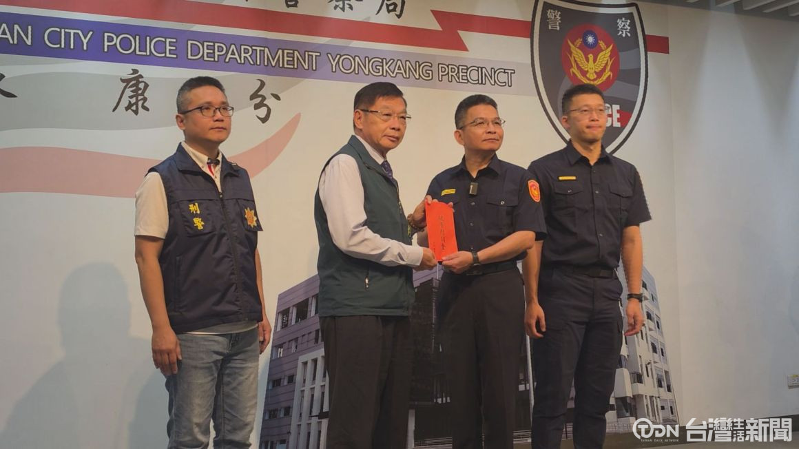▲永康分局將嫌犯緝捕歸案,副市長姜淋煌代表市長頒發破案獎金。/記者 蕭建緯攝