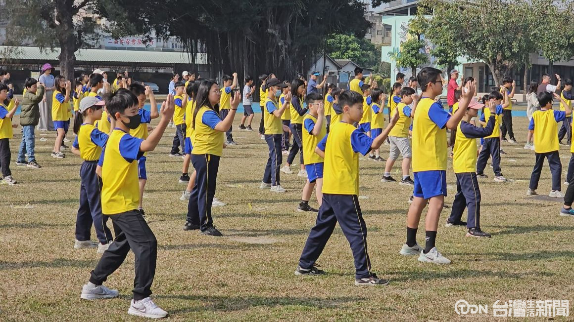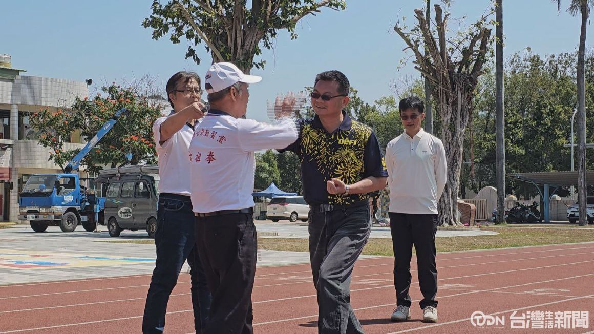▲學生在操場上整齊劃一地打出「西螺七崁綜合套路」。記者 謝沂辰/攝