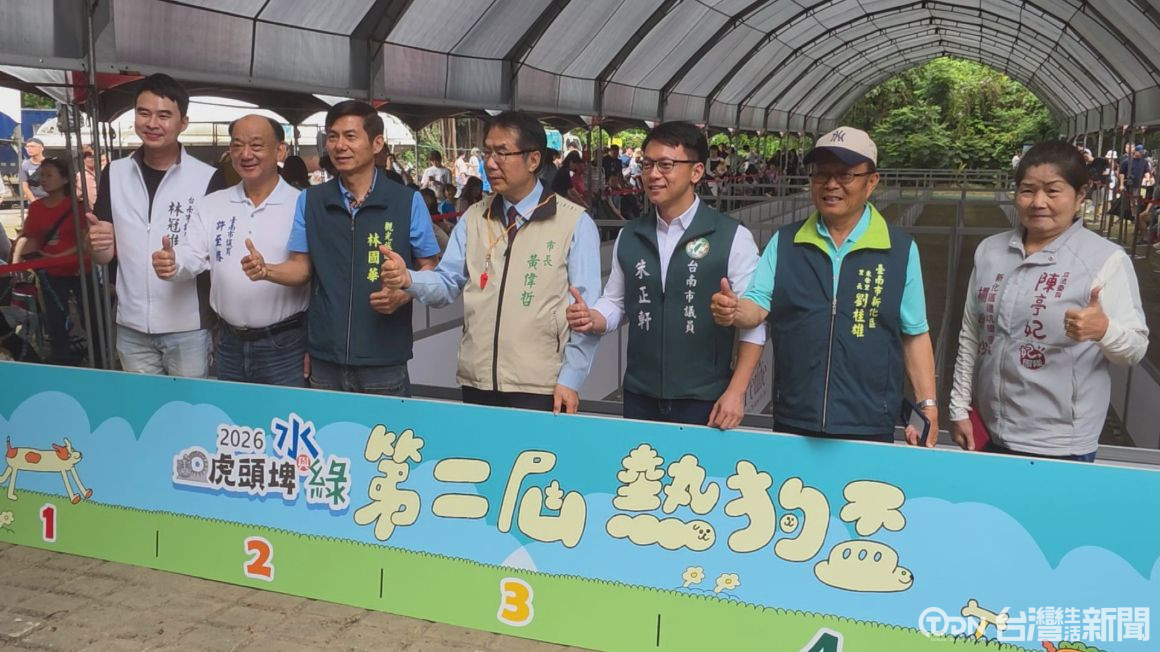 第二屆熱狗盃活動今(25)日在虎頭埤風景區熱鬧登場,吸引眾多民眾帶著愛犬前來參與。市長黃偉哲與多位市議員一同為趣味競賽揭幕,現場氣氛熱絡,替參賽毛孩加油打氣。