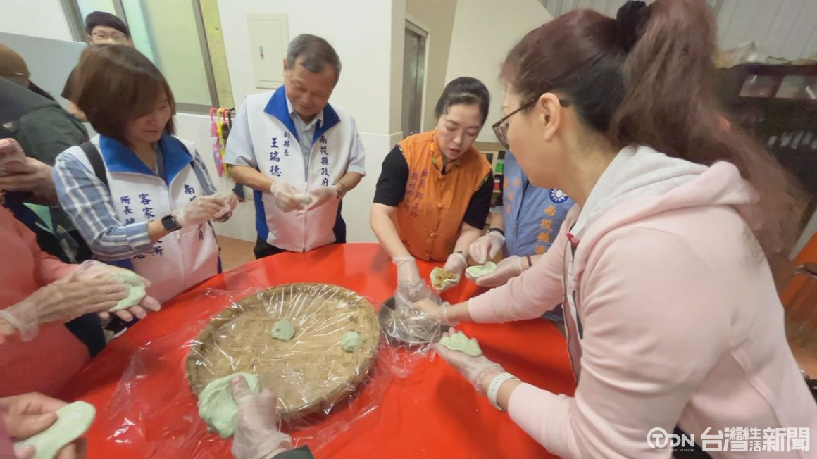 ▲南投縣副縣長王瑞德體驗製作客家小吃/記者 范宏坤 攝