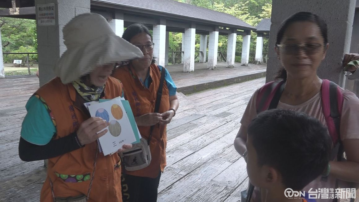 國姓鄉九份二山的桐花小旅行,全長六公里,沿路有安排補給站,在專業導覽人員的帶領下,欣賞沿路的水保設施及桐花美景。為了推廣在地客庄文化,主辦單位安排樹葉拓印帆布包DIY,學習簡單的客語。