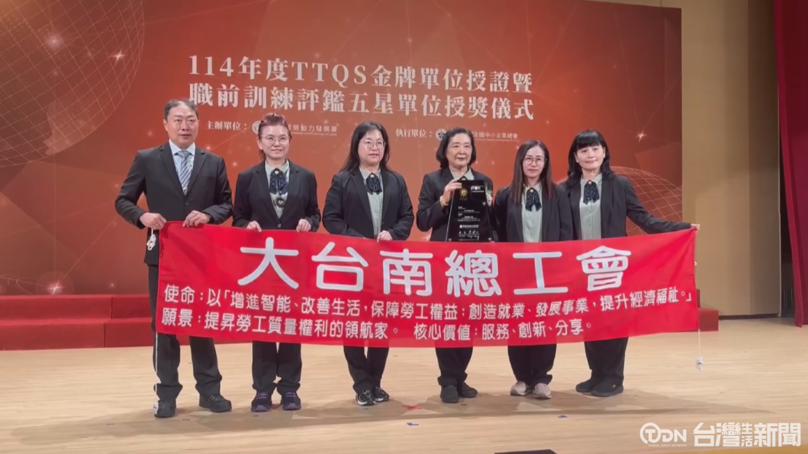 勞動部114年度TTQS人才發展品管系統評核.授證暨受獎儀式日前登場,除了臺南市政府勞工局連續15年拿下金牌認證,作為長年合作夥伴的大台南總工會,也創下連續13年連年金牌的優秀成績。