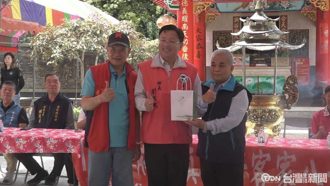 ▲魚池鄉長劉啟帆贈送紅茶禮物,行銷在地特色產業/記者 范宏坤 攝