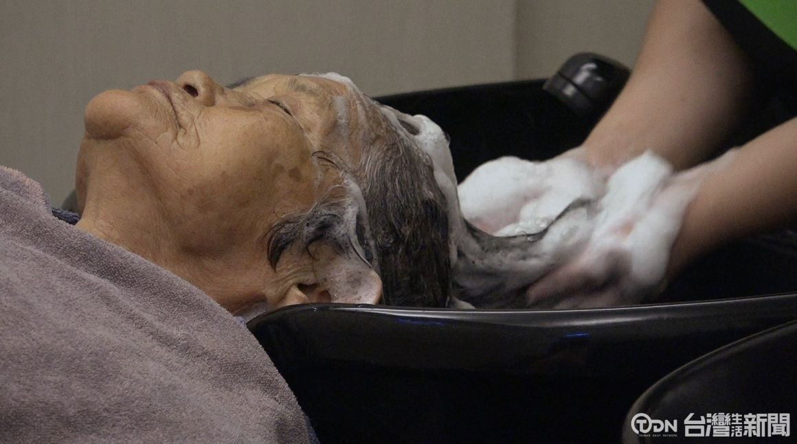 ▲長輩來到髮廊體驗洗頭,閉上眼享受這個放鬆的時刻/記者 李汶羲攝