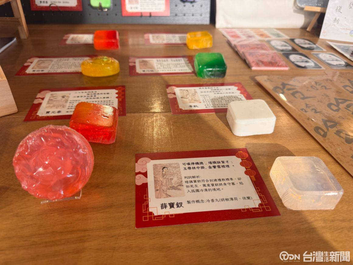 ▲嘉義大學中文系學生發揮巧思,以紅樓夢12金釵個性為基底,打造屬於各個角色的香皂/記者黃培怡 攝。