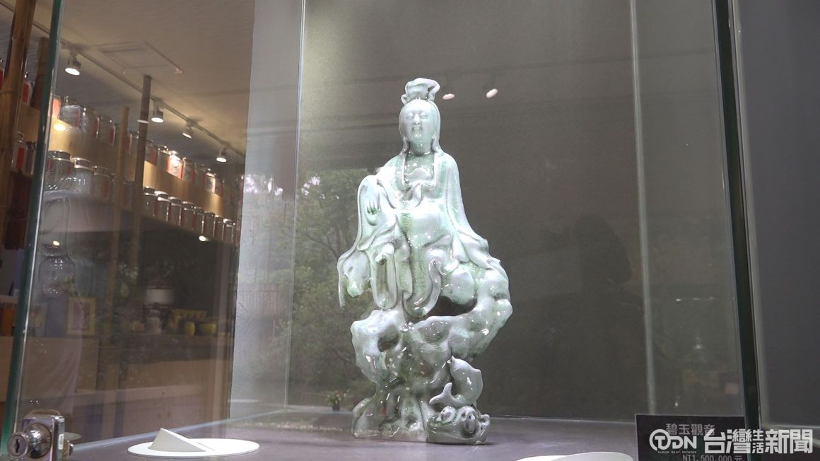 極低的良率下,陶藝家何志隆卻能成功打造出這件「碧玉觀音」,柔和的線條中與溫潤釉色,呈現靜謐慈悲的觀音之美。