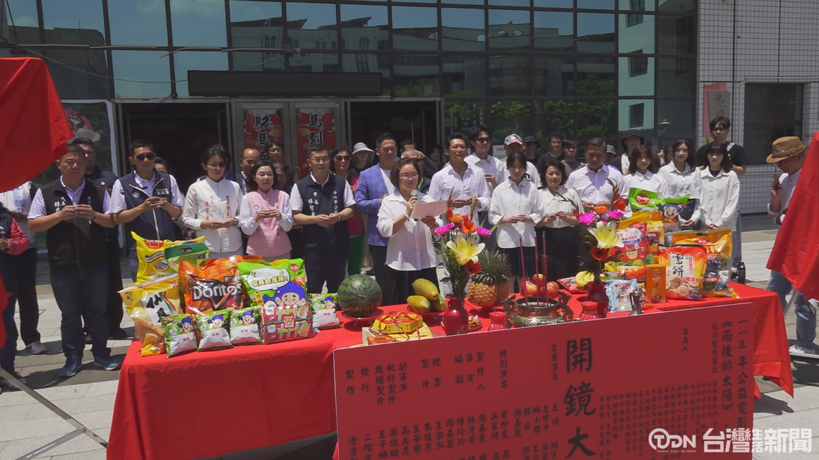 ▲由資深藝人周嘉麗號召演藝同仁組成的公益團體「曉水珠心靈之旅」,第五部公益電影《雨後的太陽》,日前在斗六市公所舉行開鏡祈福儀式。/記者 江儀 攝