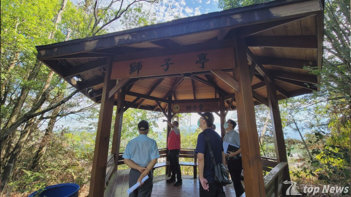 ▲魚池尖登山步道增建涼亭/記者 范宏坤 攝
