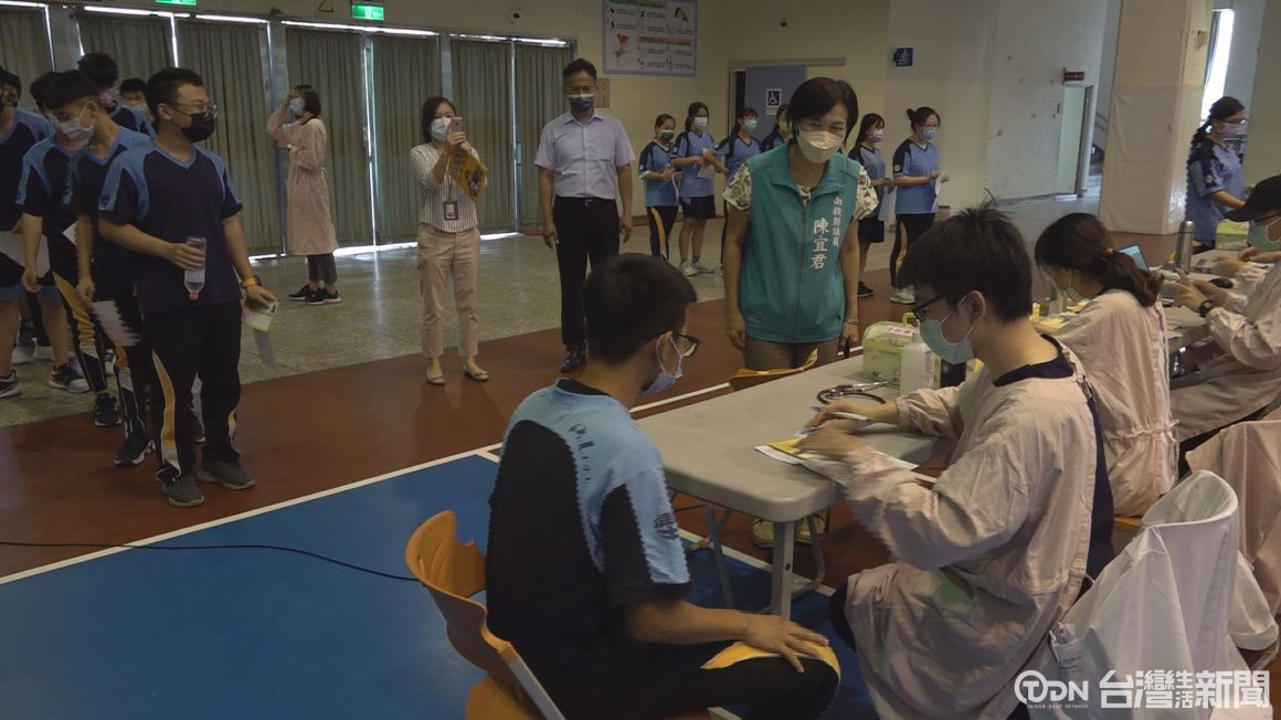 埔里國中全校學生施打BNT疫苗,校方做好萬全的準備,包括衛教宣導,學生暈針的緊急應變處理,縣府衛生局派員現場督導,南投縣議員陳宜君特別前往關心,呼籲大家一起做好防疫工作。