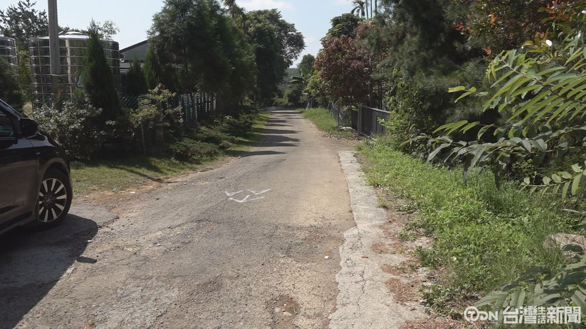 ▲聯外道路大約兩百公尺沒有排水系統,每逢大雨積水嚴重/記者 范宏坤 攝